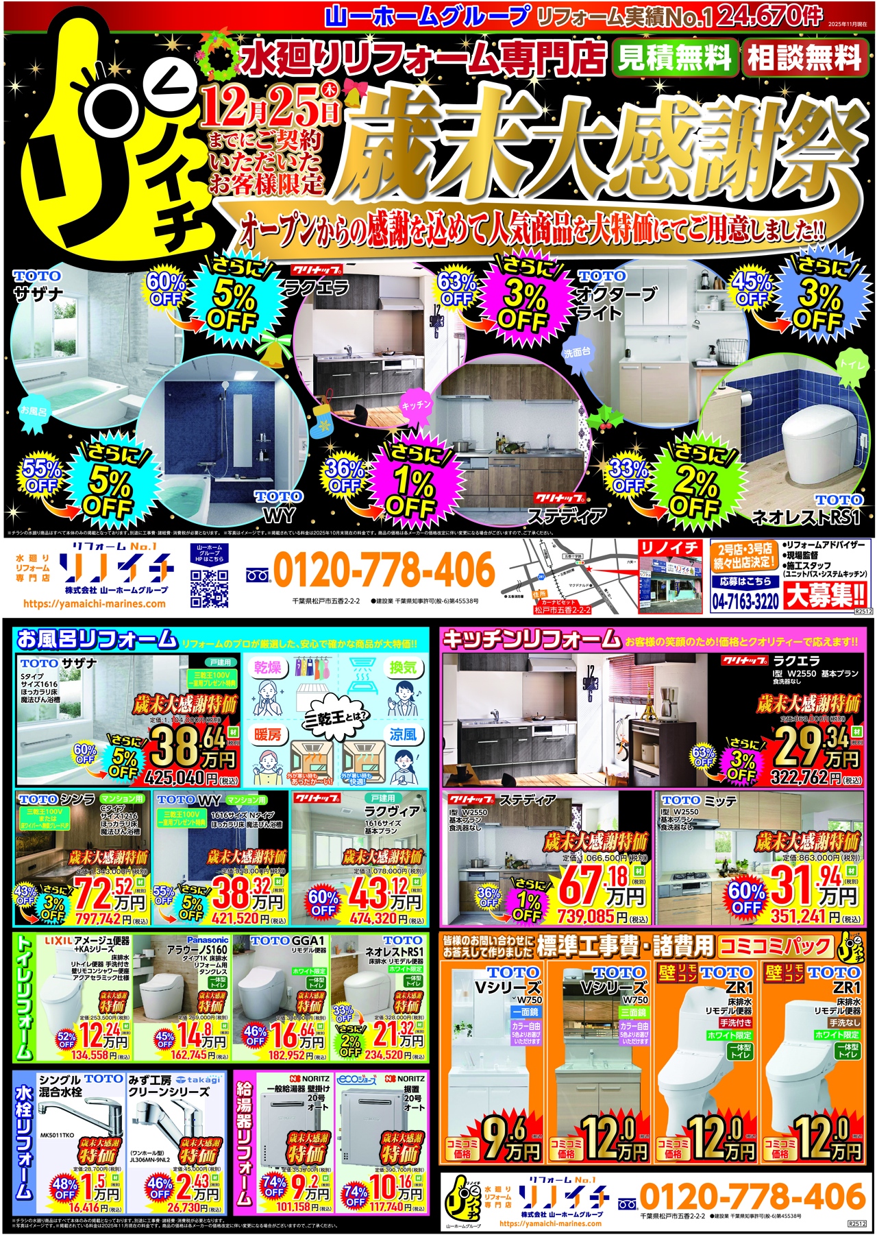 最後に、松戸店では、”歳末大感謝祭としまして、12/25までにご成約いただいたお客様限定で、さらに最大5%OFFのキャンペーンを実施しております。お近くのお客様、是非お立ち寄りください。