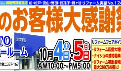 TOTO柏ショールムにおいて、10月4日(土)・5日(日)、
