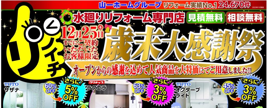 水廻り専門店「マリンズ」、外壁塗装・屋根事業部「ペインターズ」主催 大特価リフォームフェア開催!
